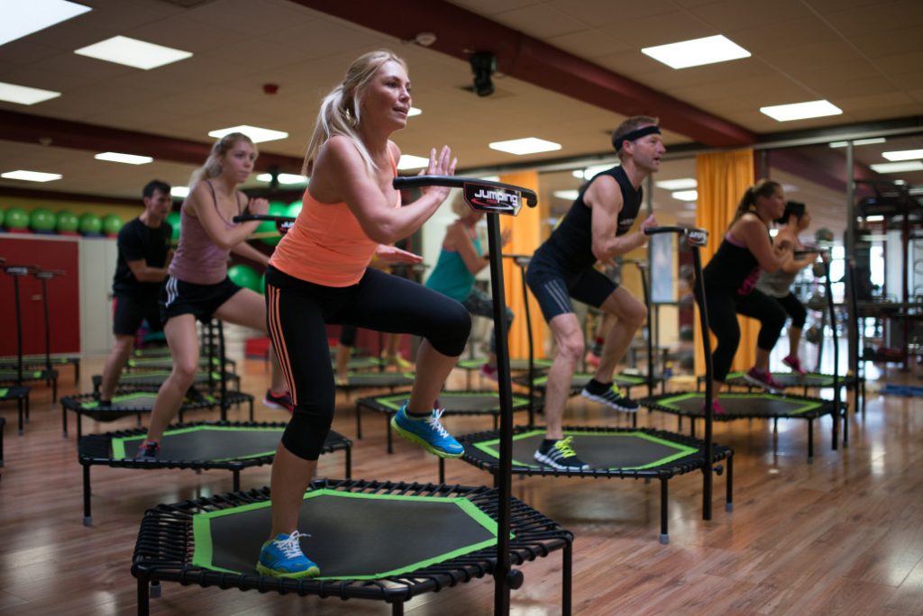 Jumping fitness es una de las nuevas tendencias que se ha ido instalando con fuerza en los gimnasios de todo el mundo. Para su entrenamiento se necesita únicamente una cama elástica o trampolín hexagonal, con una barandilla de la cual ayudarse para poder ejercitar durante la clase.