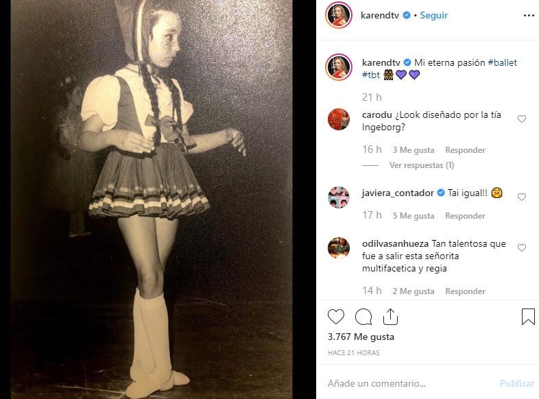 En ella, una pequeña Karen aparece en blanco y negro presentando un número de ballet, disciplina que confiesa es su verdadera pasión.