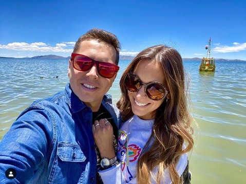 'La felicidad es completa solo cuando se comparte... #devaca', escribió el ex 'Mucho gusto' para acompañar la postal en la que su pareja aparece en topless, mientras él la abraza por la cintura.