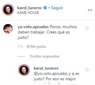 Algunos usuarios lo criticaron por ser 'privilegiado' de hacer aislamiento recomendado. Ante esto, Karol no dudó en responder: "¿Y qué es justo? Por eso es mejor vivir el día a día; no olvido mi pasado, disfruto mi presente, el futuro… no lo sé".
