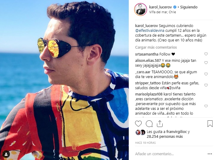 "Seguimos cubriendo @elfestivaldevina. Cumplí 12 años en la cobertura de este certamen... espero algún día animarlo. (Creo que en 10 años más)", escribió el también locutor radial.