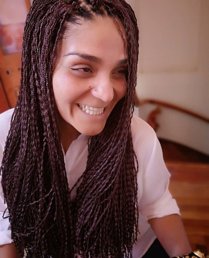 El cambio de imagen consistió en la instalación, sobre su pelo muy corto, de trenzas reutilizables de tipo minibraids. ¡Y el resultado dejó a Kathy Orellana feliz!