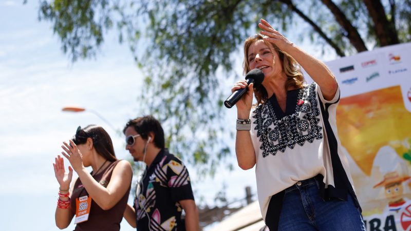 Katherine Salosny, conductora del matinal "Mucho gusto" de Mega, tuvo una participación especial en "Aló aló", obra teatral dirigida por Alejandro Goic.