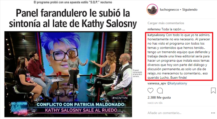 “Con todo lo que yo te admiro, honestamente no era necesario. Al parecer no has visto el programa con todos los temas y contenidos que hemos tenido”, comentó Salosny en la misma publicación del actor.