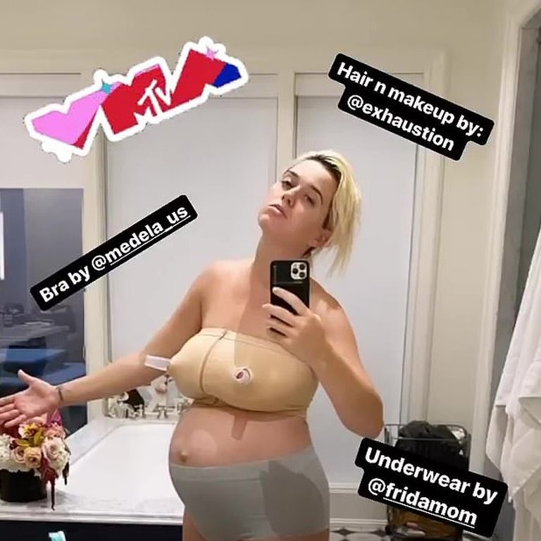 Fiel a su estilo, la artista californiana hizo referencia a los premios MTV Video Music Awards 2020, mostrando su 'look' para la ocasión. Y es que a diferencia de otros años, en que Katy ha deslumbrado con creativos y glamurosos atuendos, esta vez le tocó 'vivir' el evento desde casa y con su conjunto de maternidad.