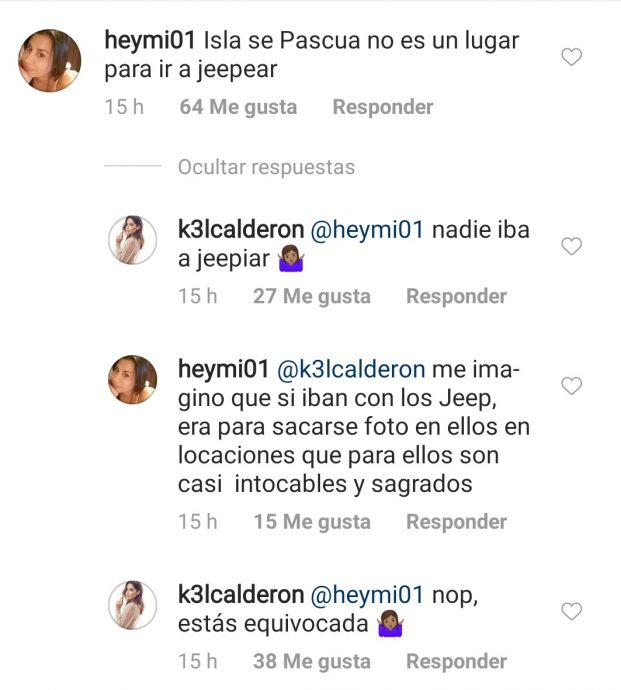 Pero tal parece que su estadía fue bien polémica, sobretodo por sus publicaciones. Primero por una que decía: “Por más mañanas como esta En cuanto al lugar, no tengo nada que decir de Rapa Nui, simplemente hermoso ”, que muchos criticaron por supuestamente 'no encontrarle nada bello a la isla'.