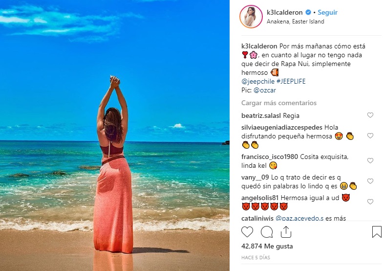 Si bien ahora se encuentra de vacaciones en Brasil junto a su madre Raquel, Kel Calderón estuvo hace unos días en Isla de Pascua con el equipo de Jeep Chile, para conocer el bello lugar, pero también para trabajar con la marca.