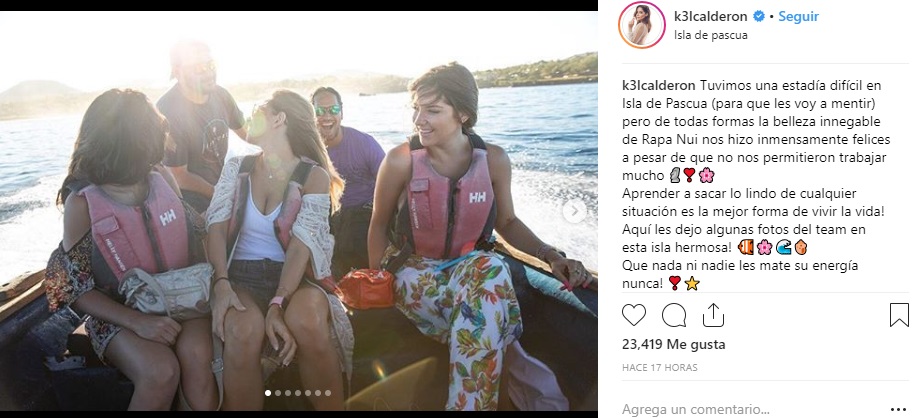 “Tuvimos una estadía difícil en Isla de Pascua (para qué les voy a mentir), pero de todas formas la belleza innegable de Rapa Nui nos hizo inmensamente felices a pesar de que no nos permitieron trabajar mucho. Aprender a sacar lo lindo de cualquier situación es la mejor forma de vivir la vida. Aquí les dejo algunas fotos del team en esta isla hermosa”, escribió junto a una postales.