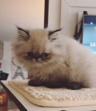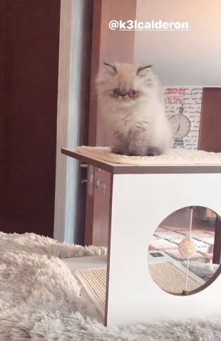 Se trata de un pequeño gatito de dos meses, al cual la fashionista le está buscando nombre.