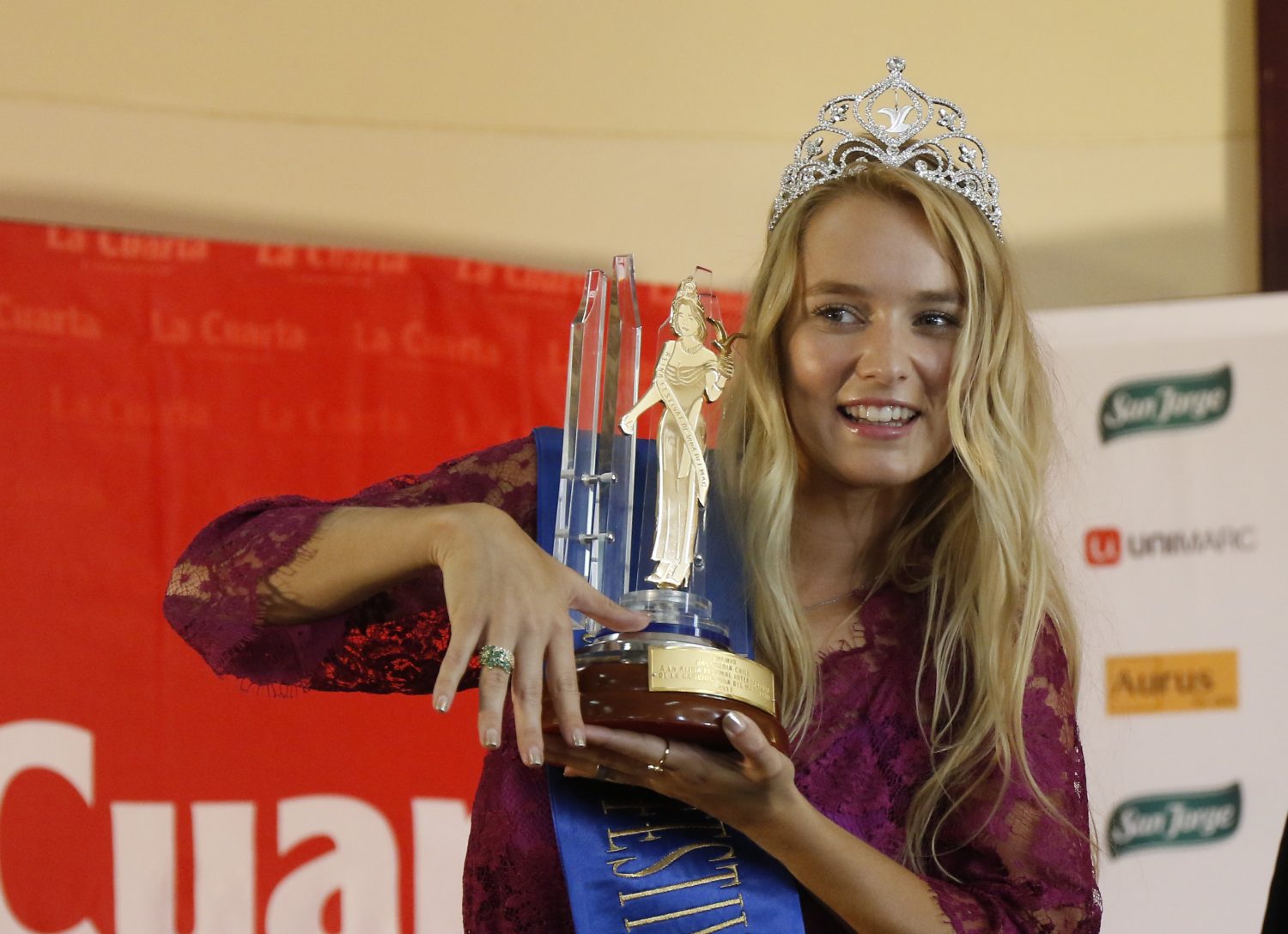 Tras una estrecha votación, la panelista de Bienvenidos obtuvo 143 sufragios, contra la candidata de La Red, la española Gala Caldirola, la que obtuvo 137 votos. Más atrás quedó la cantante mexicana Jass Reyes, quien compite en el festival representando a la nación norteamericana.
