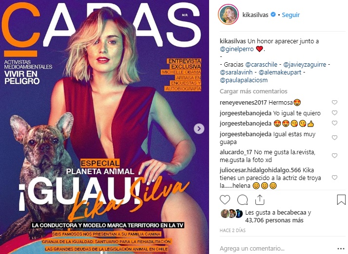 Esto, después de que en su cuenta compartiera una postal de la portada de revista Caras que realizó, donde aparece con su perro Gin, un bulldog francés.