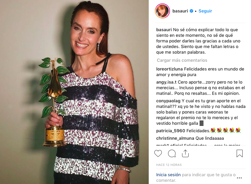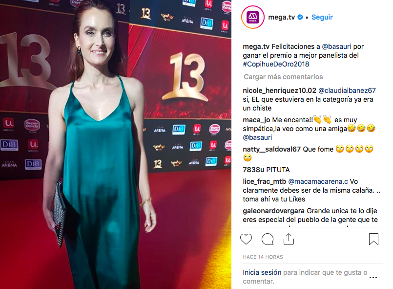 Se trata de la actriz Begoña Basauri, quien además se llevó un Copihue como "Mejor panelista" por su trabajo en el matinal "Mucho gusto".