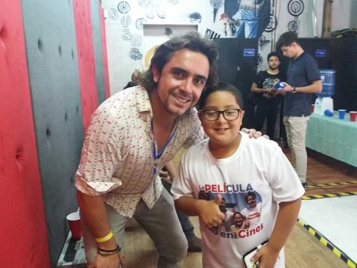 El actor, se reunió por primera vez con tres de los protagonistas de la cinta: Renato Barrera (Chimuelo), Eduardo González (Tarro) y Mario Rivas (Chico Palo), con quienes realizó algunas improvisaciones frente a la cámara de Fiebre Media, de los productores ejecutivos Juan Pablo y Andrés Navarrete.