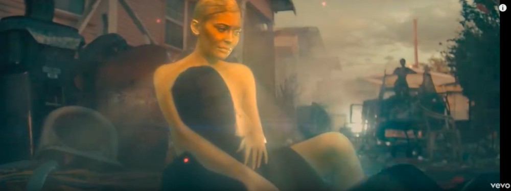 Kylie Jenner aparece en el vídeo bañada de dorado, donde en la primera parte aparece abrazando a su pareja, mientras que en la segunda aparece abrazando a un corderito, una clara referencia a la Virgen María.