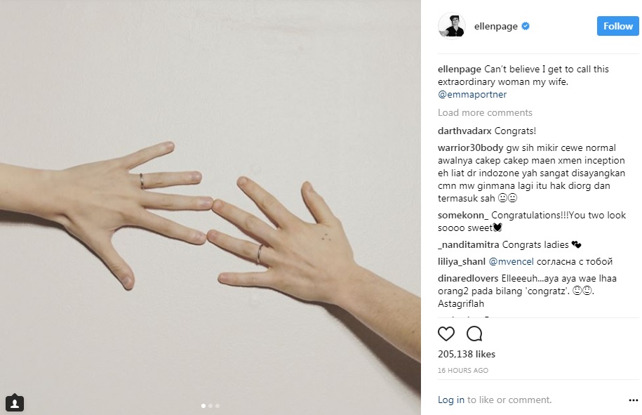Se trata de la actriz Elle Page, quien saltó a la fama en 2007 al protagonizar la película "Juno" y quien acaba de casarse con su novia, la coreógrafa y bailarina Emma Portner. Así lo anunció la misma pareja quien compartió en sus cuentas de Instagram una misma foto de sus manos con un anillo matrimonial.