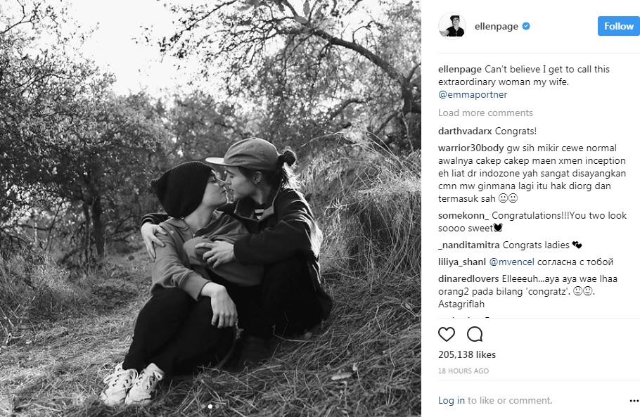 La actriz de 30 años escribió un emotivo mensaje que decía: "No puedo creer que pueda llamar esposa a esta extraordinaria mujer" y que ha recibido más de 200 mil "Me Gusta" en sólo un par de horas desde la publicación.
