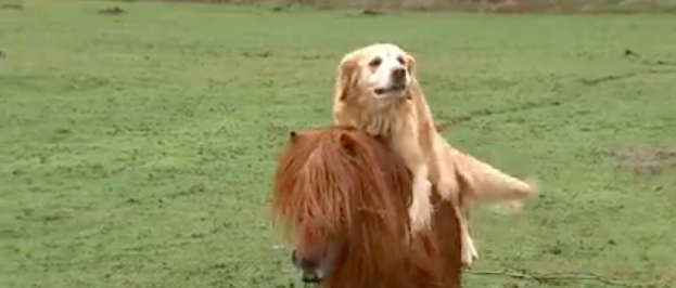Ambos juegan en un campo, donde el perro salta hasta subirse arriba del pony. El video fue subido a las redes sociales y tuvo casi el millón de visitas. ¡Míralos acá!