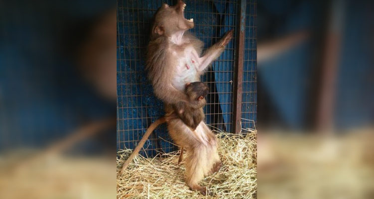 Entre las especies incautadas, se encontraban 15 ejemplares de monos papiones, entre los que había machos, hembras y crías. Algunos de ellos, se encontraban “con alopecia severa, problemas con piezas dentales con dolor evidente, rigidez al caminar, posible ceguera, cola mutilada, deshidratados”. Una de ellas incluso presentaba un cuadro de “desnutricion severa y signos de raquitismo, presentando una deformidad en la caja torácica”, mientras que un macho fue encontrado “con deformidad por aparente fractura consolidada”.