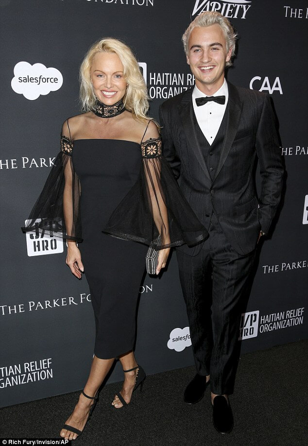 Pamela llegó junto a su hijo, Brandon Thomas Lee, de 20 años, y mostró una delgada figura, sin las exhuberantes curvas que la caracterizaban. Su look también fue mucho más recatado y formal, con un elegante vestido negro y muy poco maquillaje.
