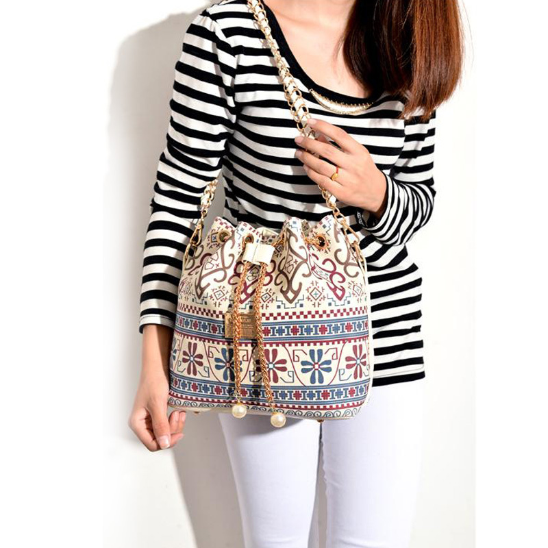 De forma redonda, su gracia es que se cierran solo con un cordel... además, son grandes, cómodas, espaciosas y hermosas, por lo que son las carteras más cómodas y entretenidas de la temporada.