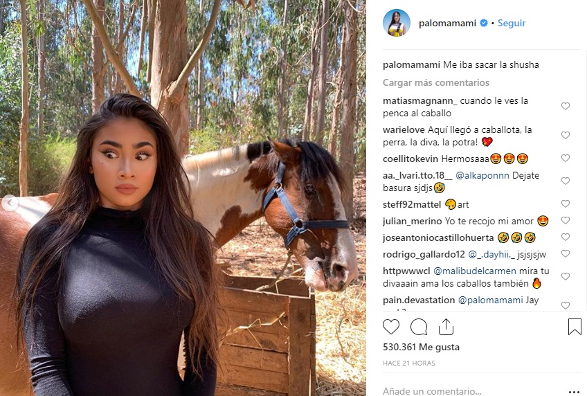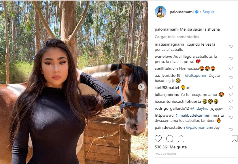"Me iba sacar la shusha", fue lo que escribió Paloma en la publicación que recibió comentarios que bromeaban con la situación como "Y el caballo también mirando la cámara jajaja"; "El caballo puso la misma cara " y "Cuando te esconden el maquillaje jaja".