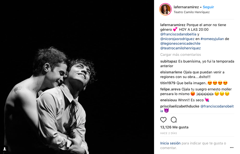 Fernanda Ramírez usó sus redes sociales para invitar a sus seguidores a ver la obra "Romeo y Julián", donde participan su esposo Francisco Dañobeitía y el actor Nicolas Rojas.