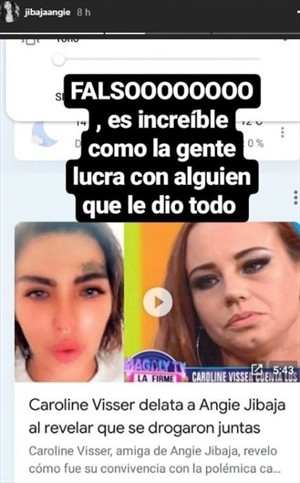 Jibaja no se quedó callada y respondió rápidamente por sus historias de Instagram, lamentando la traición de su amiga, ya que la peruana asegura que está mintiendo para lucrar. "Falso. Es increíble cómo la gente lucra con alguien que le dio todo", fue lo que escribió la ex chica reality.