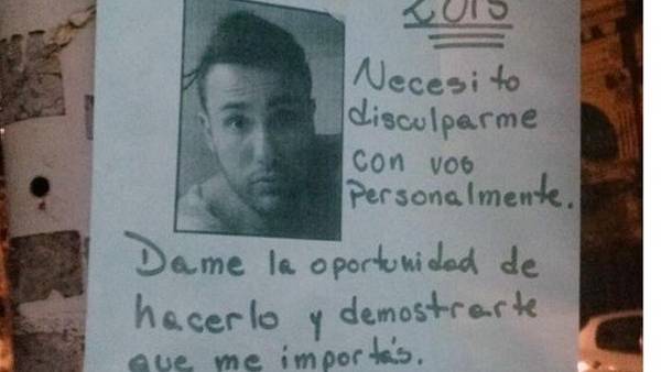 Esta chica conoció a Luis en la aplicación. Comenzaron a hablar e iba todo bien hasta que ella le habría dicho algo que lo molestó. Él, decidió bloquearla y desaparecer. Desesperada, Eugenia no encontró mejor forma de tratar de encontrarlo que llenar las paredes de todo el barrio de Palermo, donde viviría Luis, con avisos pidiéndole disculpas. "Luis, necesito encontrarte para disculparme con vos personalmente. Dame la oportunidad de hacerlo y demostrarte que me importás. Ayúdame a encontrarte", dice el mensaje, que también se ha masificado por redes sociales.
