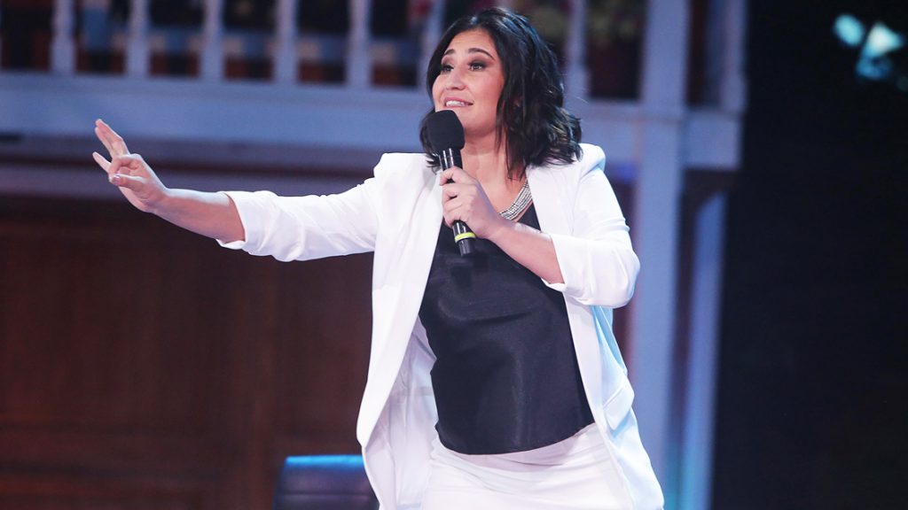 Fue mientras la integrante de "El muro" contaba un chiste sobre las mamás y la tecnología, ya que en un momento se acercó mucho al borde de la tarima y cayó directo hacia el piso, desapareciendo detrás del telón.