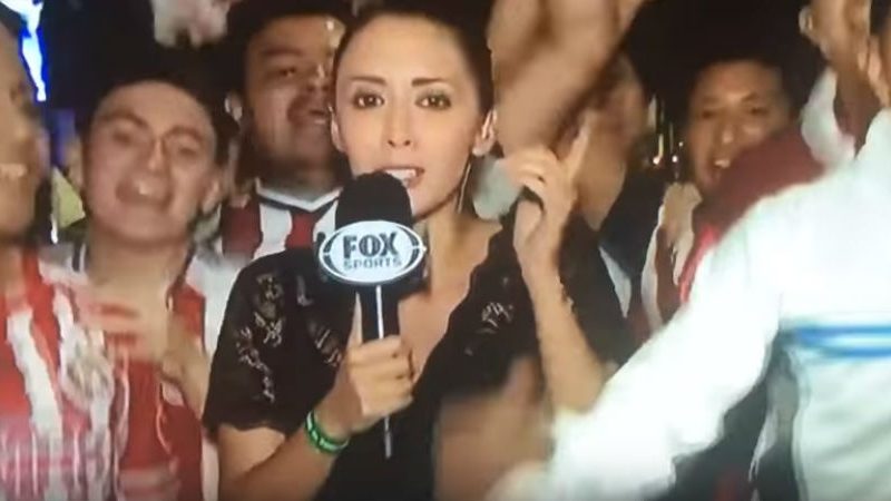 La comunicadora estaba realizando un despacho en directo para su canal, cubriendo la celebración de Chivas en Guadalajara tras ganar la Liga de Campeones de México, cuando un grupo de hinchas la acosó sexualmente.