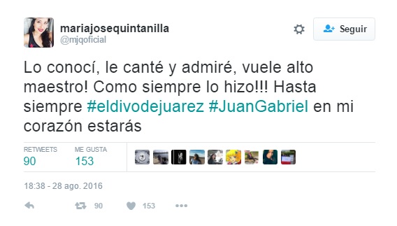Y hubo una cantante chilena a la que le llegó muy de cerca el deceso del Divo de Juárez. Se trata de María José Quintanilla, quien tuvo la suerte de poder cantar con su ídolo.