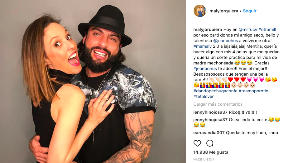 "Partí donde mi amigo seco, bello y talentoso @jeanbohus a volverme otra! #mamaly 2.0 a jajajajajajaj Mentira, quería hacer algo con mis 4 pelos que me quedan y quería un corte practico para mi vida de madre mechoneada", escribió tomándose con humor su nuevo cambio.