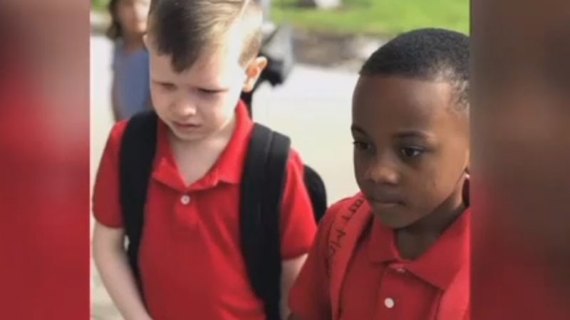 Quien tuvo un difícil primer día fue Connor Crites, quien estaba llorando desconsoladamente al sentirse abrumado por el alboroto a su alrededor de la entrada de la Escuela Primaria Minneha en Wichita. Pero por suerte tuvo la ayuda de Christian Moore, un pequeño de 8 años que se acercó a él para tomarle su mano y consolarlo.