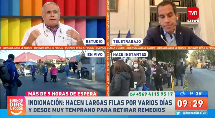 Por otro lago, Ugarte señaló que era una locura lo que estaba ocurriendo en el lugar y propuso soluciones. "Todos ustedes tienen en su bolsillo un celular de última generación. En Chile tenemos internet, ¿no podemos hacer un poco mejor esto? ¿Enviar información por teléfono y distribuir medicamentos de manera sistematizada?", señaló.