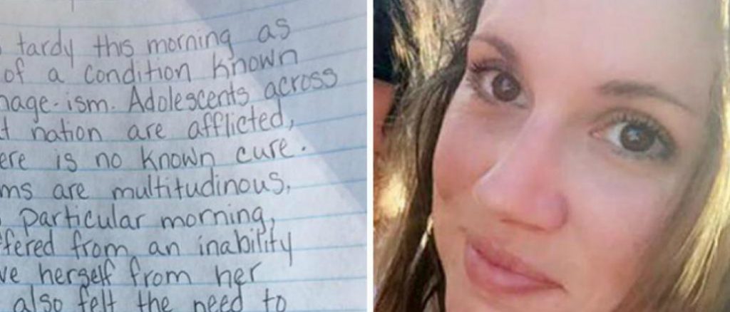 "Cara llega tarde esta mañana como consecuencia de una enfermedad conocida como 'adolescentitis'", fue lo primero que puso en la carta. "Afecta a millones de adolescentes del país y no se conoce cura", agregó.