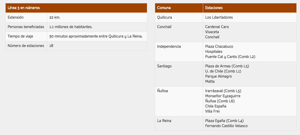 22 kilómetros de extensión y 18 estaciones que permitirán desplazarse entre las dos estaciones terminales en sólo 31 minutos. Esta, conectará las comunas de La Reina y Quilicura, pasando por Santiago Centro, Ñuñoa, Conchalí e Independencia.