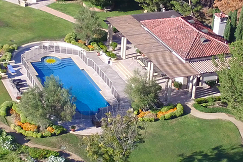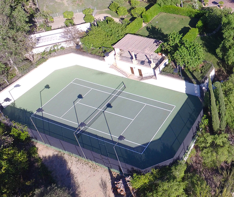 Cuenta con un gimnasio, una cancha de tenis y una piscina con su propia casa que es tan grande como para vivir ahí.