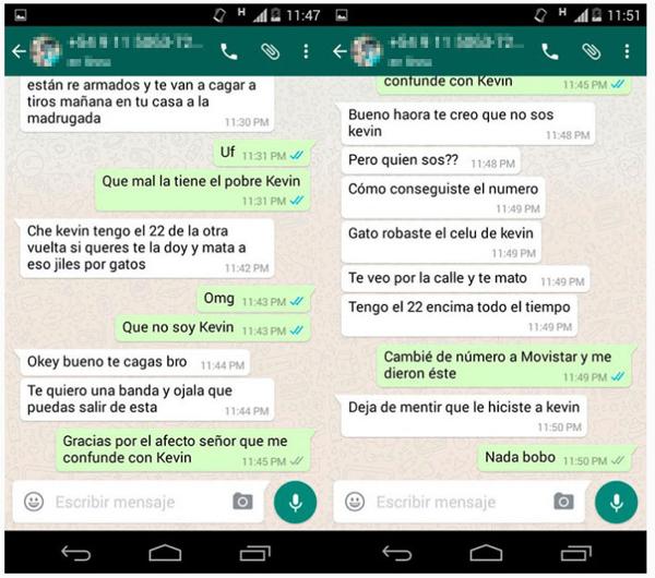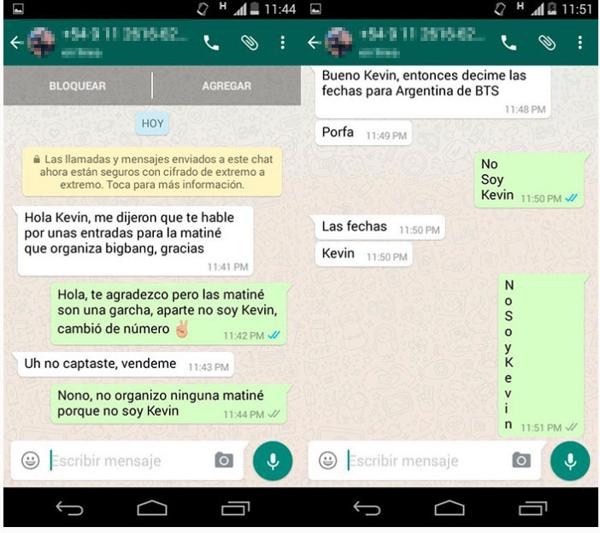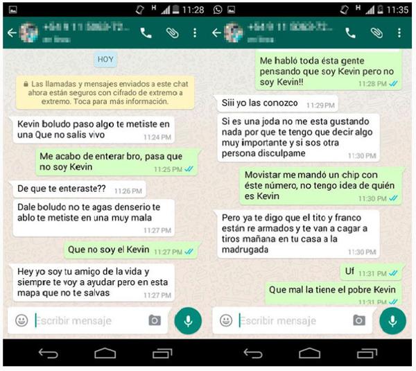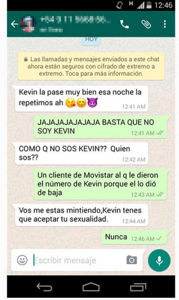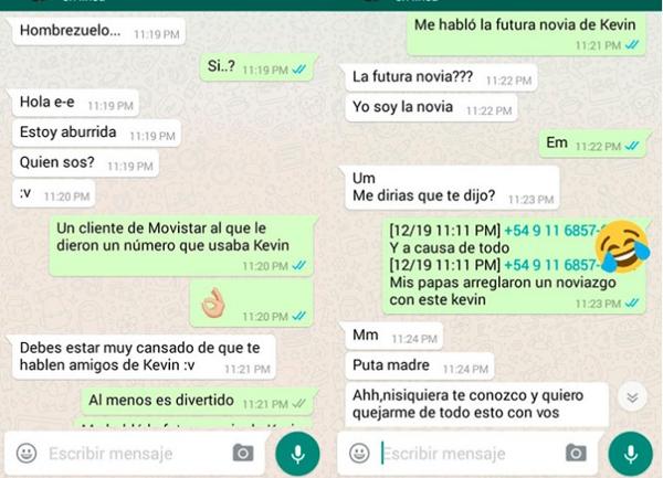 Desde que comenzó a usar Whatsapp con dicho chip, cuyo númerole entregó dicho chip, era un número de celular de un chico llamado Kevin, comenzó a recibir muchos mensajes de personas que no conocía.