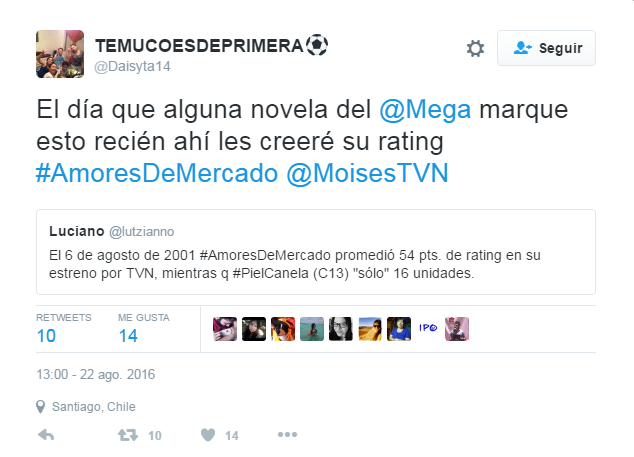 En Twitter, la ficción protagonizada por actores como Álvaro Rudolphy, Alejandra Fosalba, Angela Contreras y Luciano Cruz-Coke se convirtió en primera tendencia nacional con múltiples comentarios que valoraban su puesta al aire.
