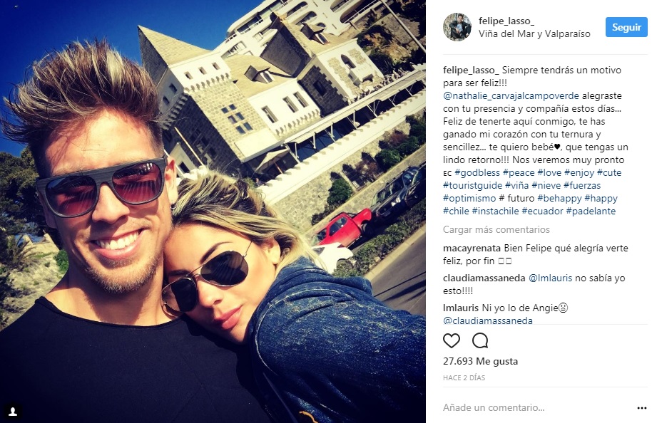 Por otro lado, Felipe Lasso no se quedó atrás y también compartió imágenes con su nueva conquista. Se trataría de Nathalie Carvajal, una guapa modelo a quien conoció en Ecuador.