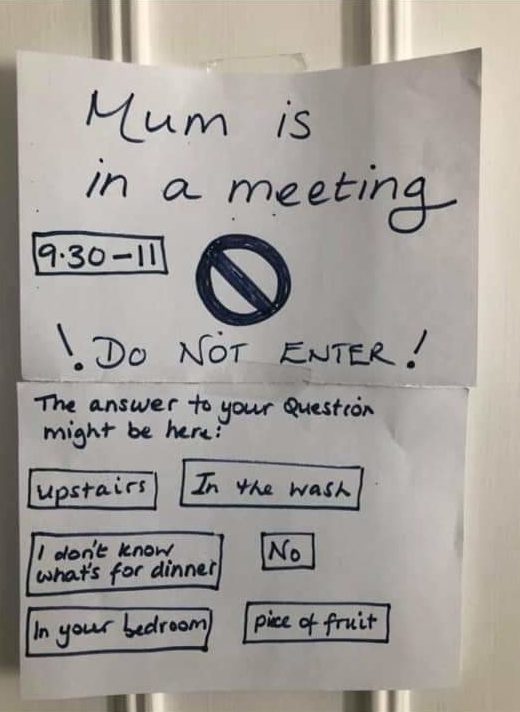 "Mamá está en una reunión de 9,30 a 11. ¡No entrar!