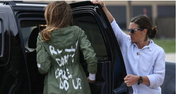 Ante las críticas, la portavoz de la primera dama, Stephanie Grisham, aseguró que "no había ningún mensaje oculto" entre la elección de la prenda y el motivo de la visita.