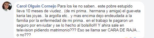 La pedida de matrimonio que para muchos fue muy romántica, se vio en vuelta en una serie polémica que nació en redes sociales. Esto, luego de que a través de Facebook un grupo de mujeres lanzara duras acusaciones contra Rodríguez, señalando su exesposa se murió un año atrás debido a un cáncer, y que el hombre se había quedado con todo el dinero que recibió por un seguro.