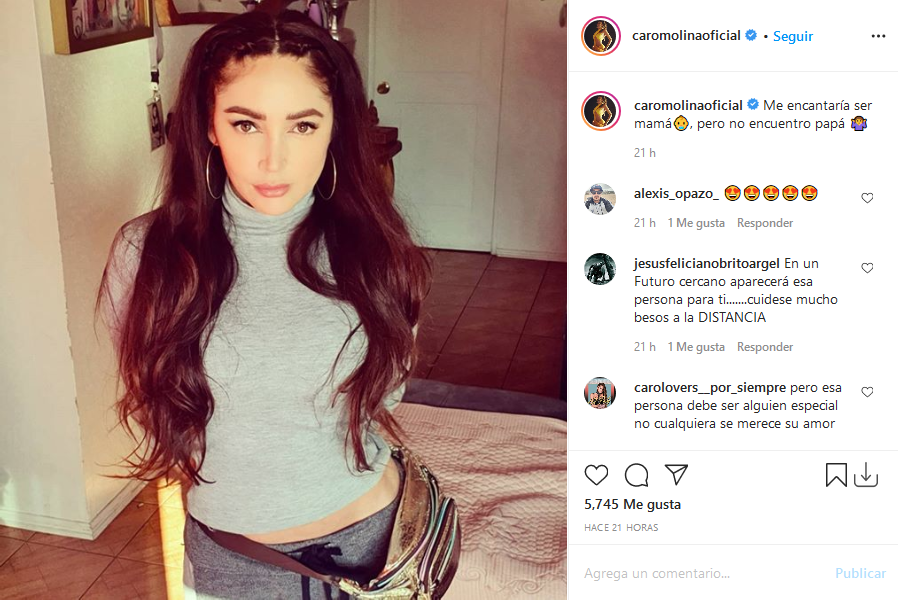 "Me encantaría ser mamá👶, pero no encuentro papá 🤷♀️", escribió la artista junto a la publicación, que ya alcanza más de 5.700 kiles y cientos de comentarios.