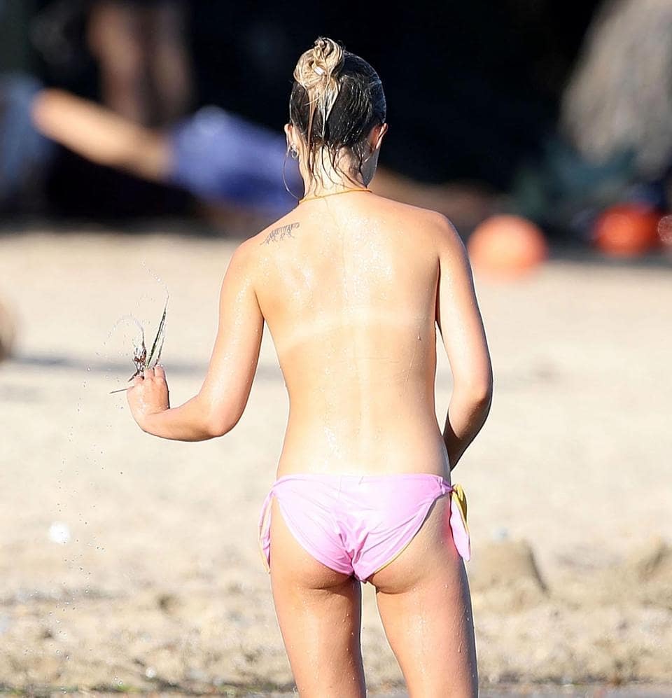 De vacaciones junto a su hermana, Lady Amelia, quien además tiene una exitosa carrera en el modelaje, se relajó en la playa, quitándose la parte de arriba de su bikini.