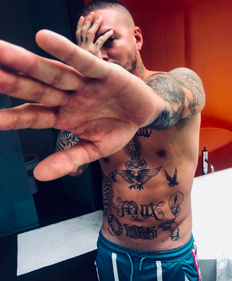 En esta oportunidad publicó una sexy foto, donde deja a la vista todos sus tatuajes. "No es fácil ver algo tan sexy entonces me cubro para protegerlos Jejjejejejejejeje", fueron las palabras del cantante.