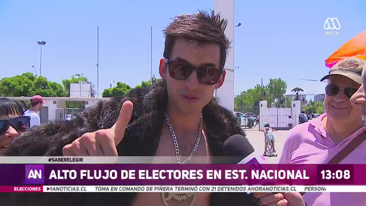 Un joven bien abrigado (a pesar del calor que hacía ayer en la Región Metropolitana), llegó hasta el Estadio Nacional: el autodenominado "estrella del reggaeton".