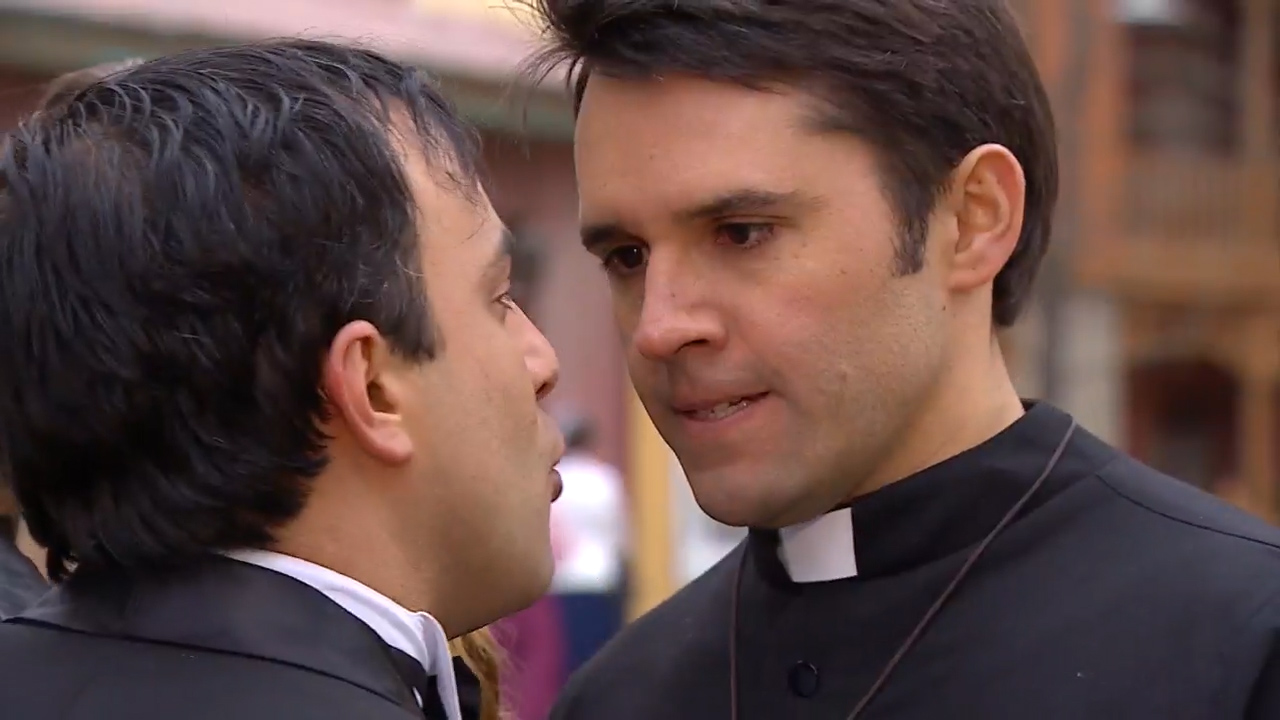 El padre Reynaldo mata a Horacio luego de que éste se entera de su relación con María Elsa.