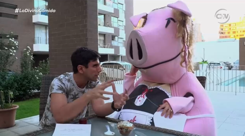Con un disfraz de chancho y peluca rubia, el personaje portaba un postre en la mano recordando el incidente que protagonizó con Nicole “Luli” Moreno hace unos años en Argentina. Además el "chanchito" hablaba en el mismo tono de Nicole Moreno, lo que varios televidentes hicieron notar su molestia por el bullying evidente que CHV transmitió a través de sus pantallas.