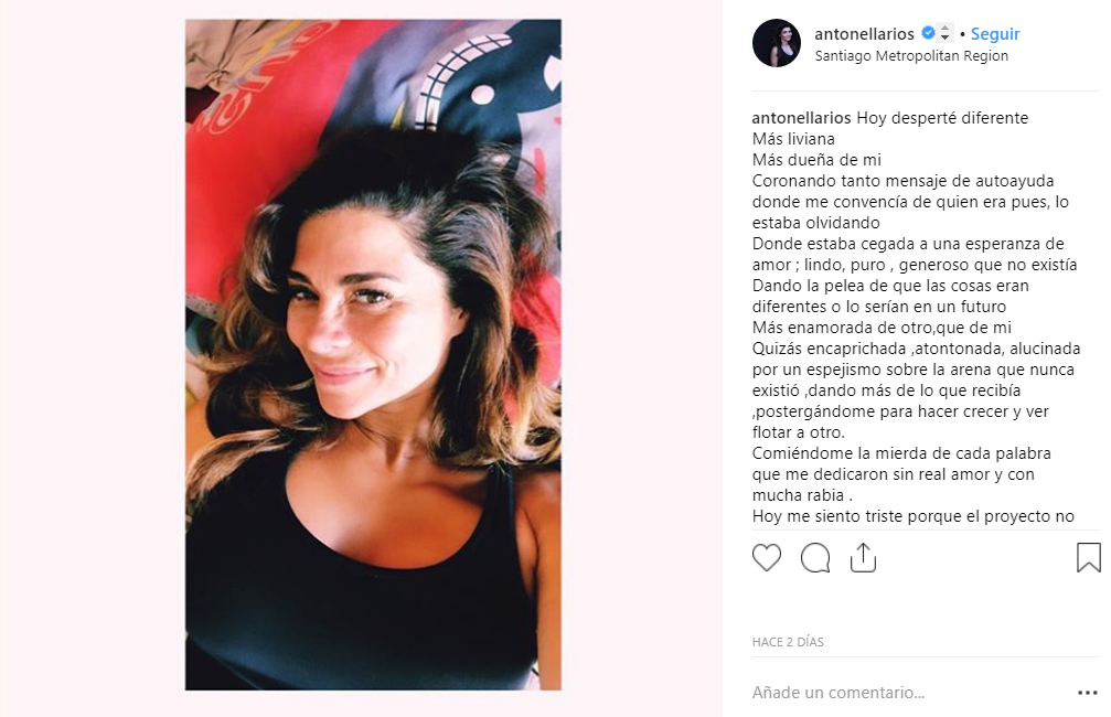A través de su Instagram, Antonella Ríos se refirió por primera vez al término de su relación con el modelo Javier Muñoz. Fue en esta publicación que la actriz contó que no lo pasó bien durante estos meses junto a su ex pareja.